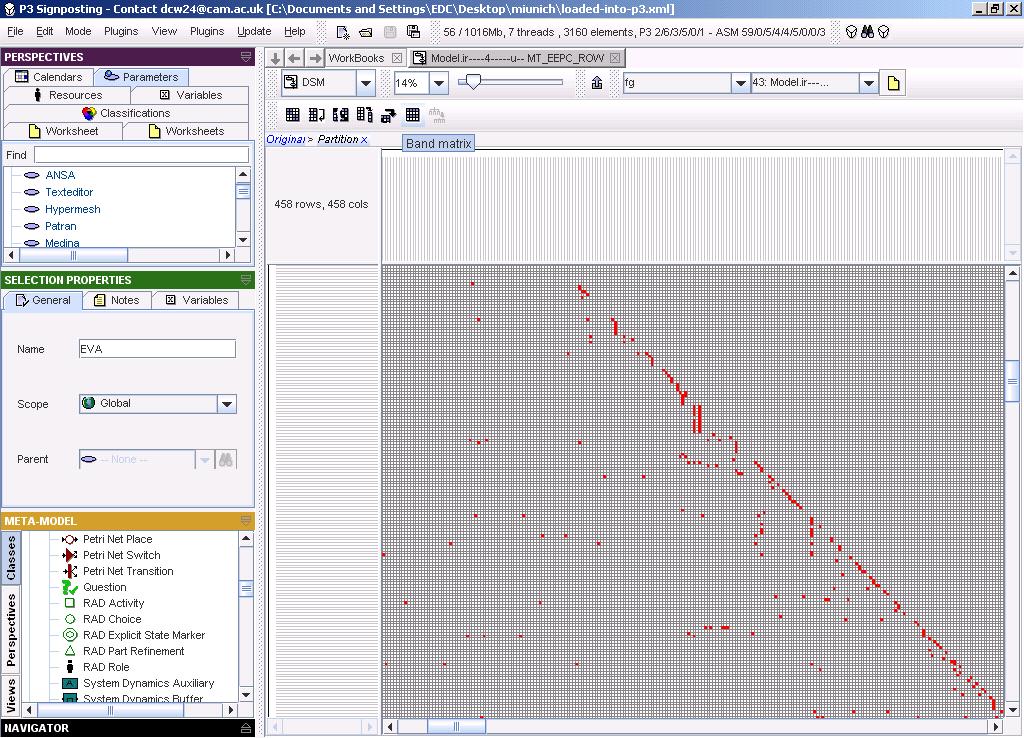Cambridge Advanced Modeller (CAM) is a software tool for modelling and analysing the dependencies and flows in complex systems – such as products, processes and organisations. It provides a DSM tool, a diagrammer, and a simulation tool.