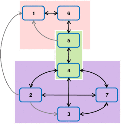 Note that by making participant 4 a member of both teams 2 and 3, we were able to absorb more interactions internally within a team without unnecessarily increasing the team size (by including participant 5 in team 3).