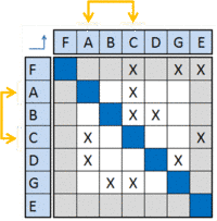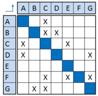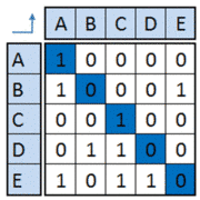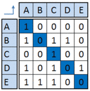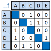 The Adjacency matrix is a binary DSM where an empty cell is replaced with a “zero” and a non-empty cell is replaced by “one”.